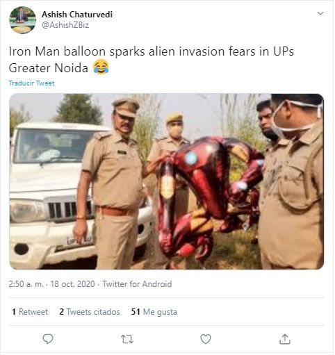Si bien a todos nos gustaría ver a personajes de Marvel cobrar vida, y más si de Iron Man se trata, es verdad que más de uno se llevaría un susto si aparecieran los Avengers de la nada. Por suerte el oficial local de policía Anil Kumar Pandey aclaró un poco el panorama: “Una parte del globo estaba sobre el agua” y agrego “La gente realmente no sabía lo que era, por eso se pusieron ansiosos al verlo”.