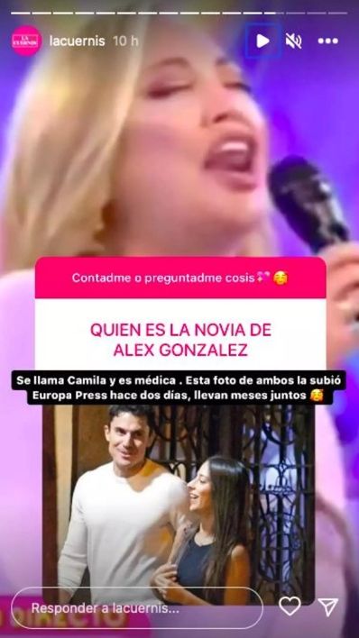 Pese a todas las especulaciones, una cuenta de Instagram que revela información sobre las celebridades, desmintió el rumor de romance. @lacuernis reveló que Alex González llevaría algunos meses saliendo con Camila Rojido, una doctora de medicina estética. De hecho, Europa Press compartió una fotografía de los dos caminando juntos muy juntos por la vía pública.