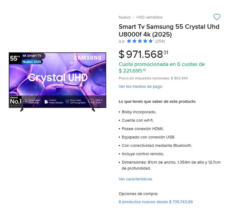 Samsung también tiene opciones fuertes. El modelo Crystal UHD de 55 pulgadas ofrece buena calidad de imagen y gran compatibilidad con apps. Es una opción confiable para uso diario, con buen rendimiento en deportes y series.