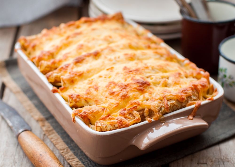 - Precalienta el horno a 180°C (350°F) y coloca la bandeja de crepes en el horno precalentado y gratina durante 5-7 minutos, o hasta que el queso se derrita y comience a dorarse.