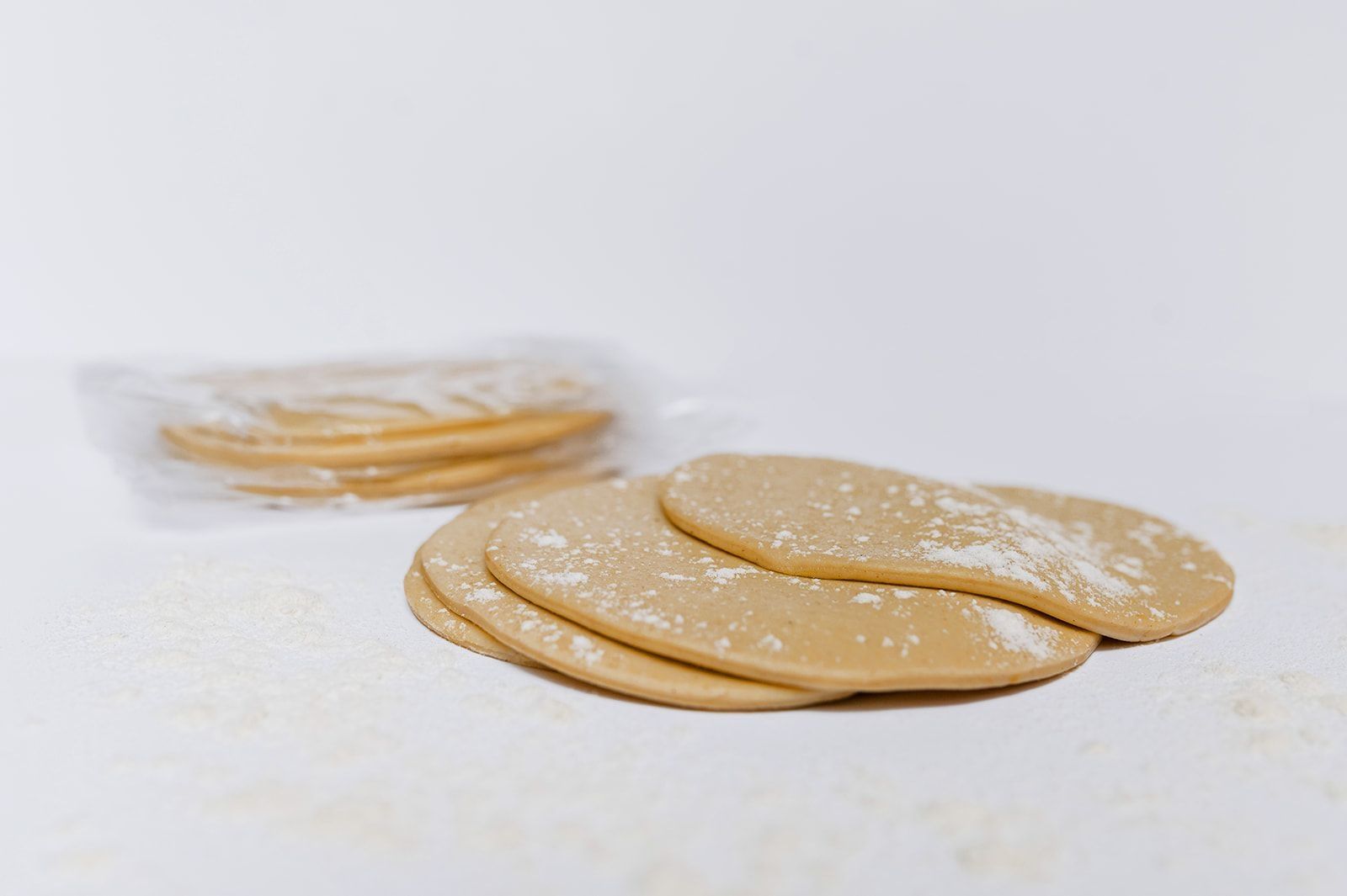 Separar los discos y apilarlos aplicando una fina capa de harina entre cada uno, para evitar que se sequen o se peguen.