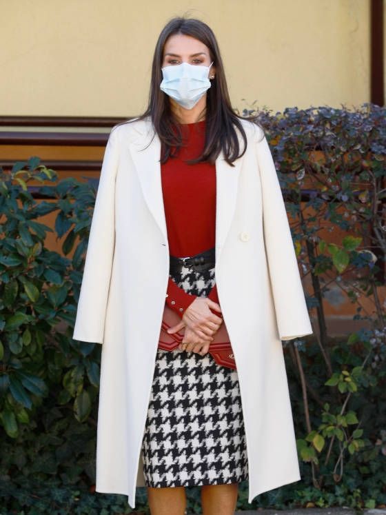 La falda que usó la madre de la princesa Leonor tiene un estampado exquisito, príncipe de gales. El otro detalle en el que se hizo foco en este look de la esposa del rey Felipe VI, fue la manera en la que usó su abrigo. Sin usar los brazos por dentro, la reina se colocó su abrigo blanco por sobre los hombros como si fuera una capa.