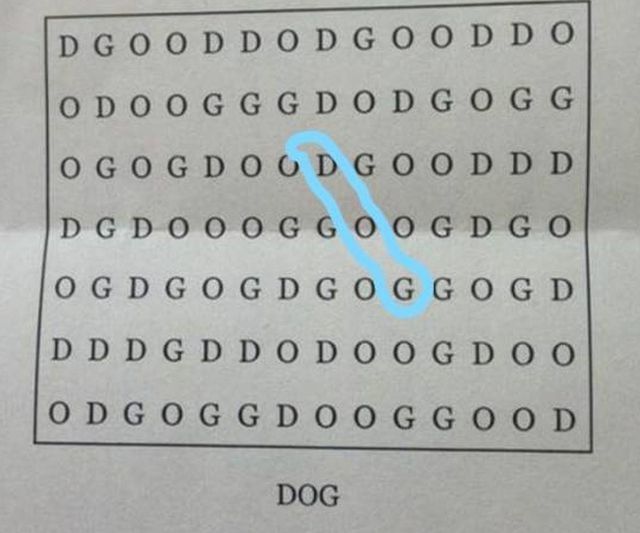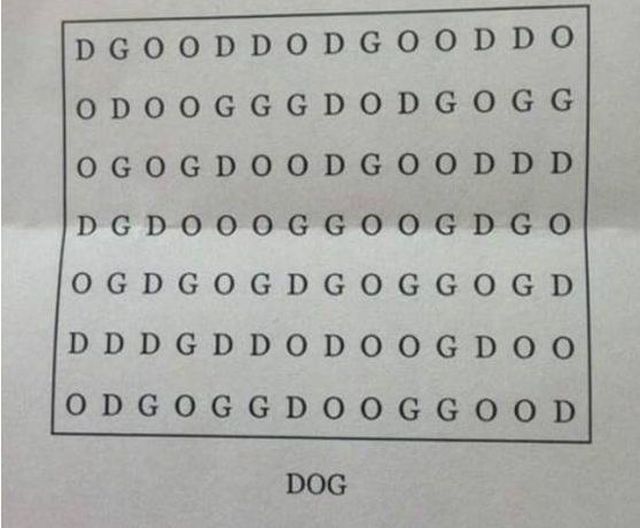 Este tipo de ejercicio ayuda a fortalecer la mente y agudizar el sentido de la vista. En esta ocasión deberás encontrar la palabra “DOG” en esta sopa de letras en menos de 30 segundos.