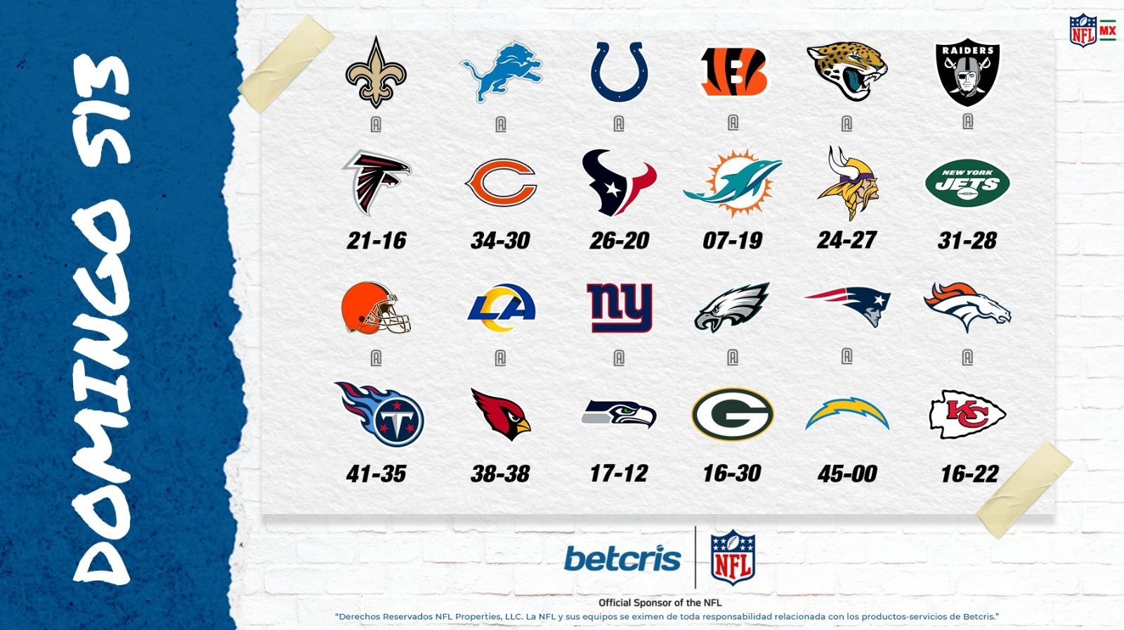 Este domingo, los Saints derrotaron 21-16 a los Atlanta Falcons y los Chicago Bears perdieron con los Detroit Lions, combinación que hace de los de New Orleans la primera franquicia que sabe que estará en la Postemporada. Los Kansas City Chiefs también aseguraron su presencia tras derrotar a los Denver Broncos 22-16.