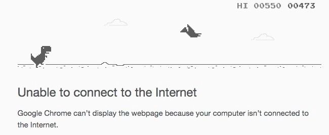 El verdadero nombre del juego es “ Chrome Dino Run” el cual se juega solo con dos movimientos, saltar y agacharse. El único objetivo es la supervivencia del Tiranosaurio rex que tiene que esquivar pterodáctilos y cactus.