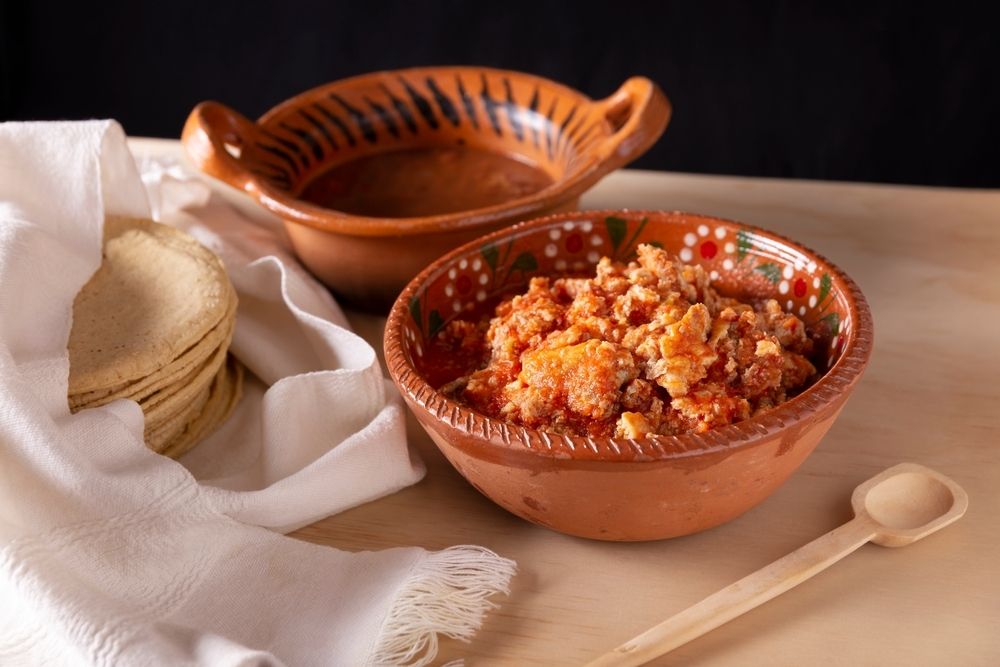 Acompáña tus huevos revueltos con frijoles refritos y tortillas.