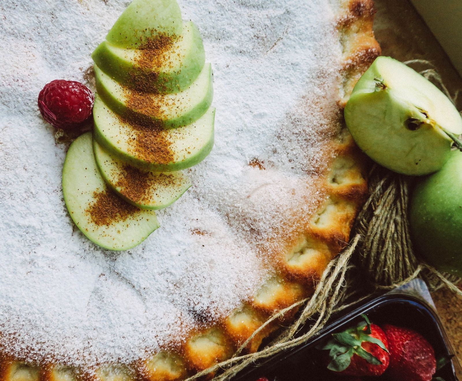 Pela y corta las manzanas en rodajas o cubos del mismo tamaño. En un recipiente, mezcla el azúcar, las manzanas, el jugo de limón, las nueces, la canela y una pizca de sal.