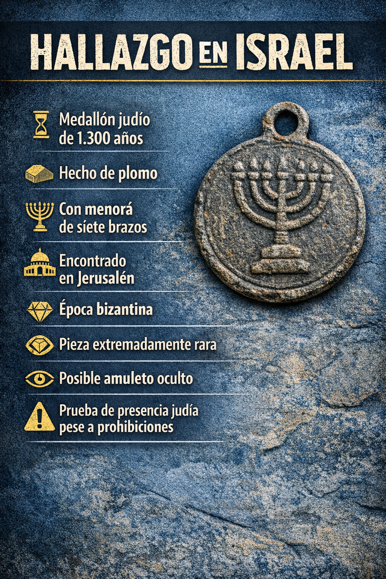 De acuerdo con los investigadores, el medallón habría sido utilizado como colgante por una persona judía entre finales del siglo VI y comienzos del siglo VII, cuando Jerusalén se encontraba bajo dominio del Imperio Bizantino cristiano. Ese contexto histórico resulta clave, ya que los judíos tenían severas restricciones para ingresar a la ciudad en ese período.