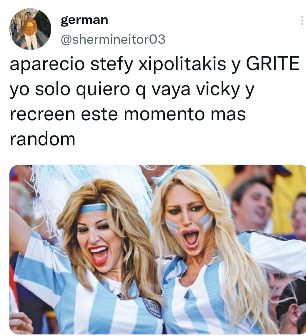 "Apareció Stefy Xipolitakis y GRITE yo solo quiero que vaya Vicky y recrean este momento mas random", Twitter @shermineitor03.
