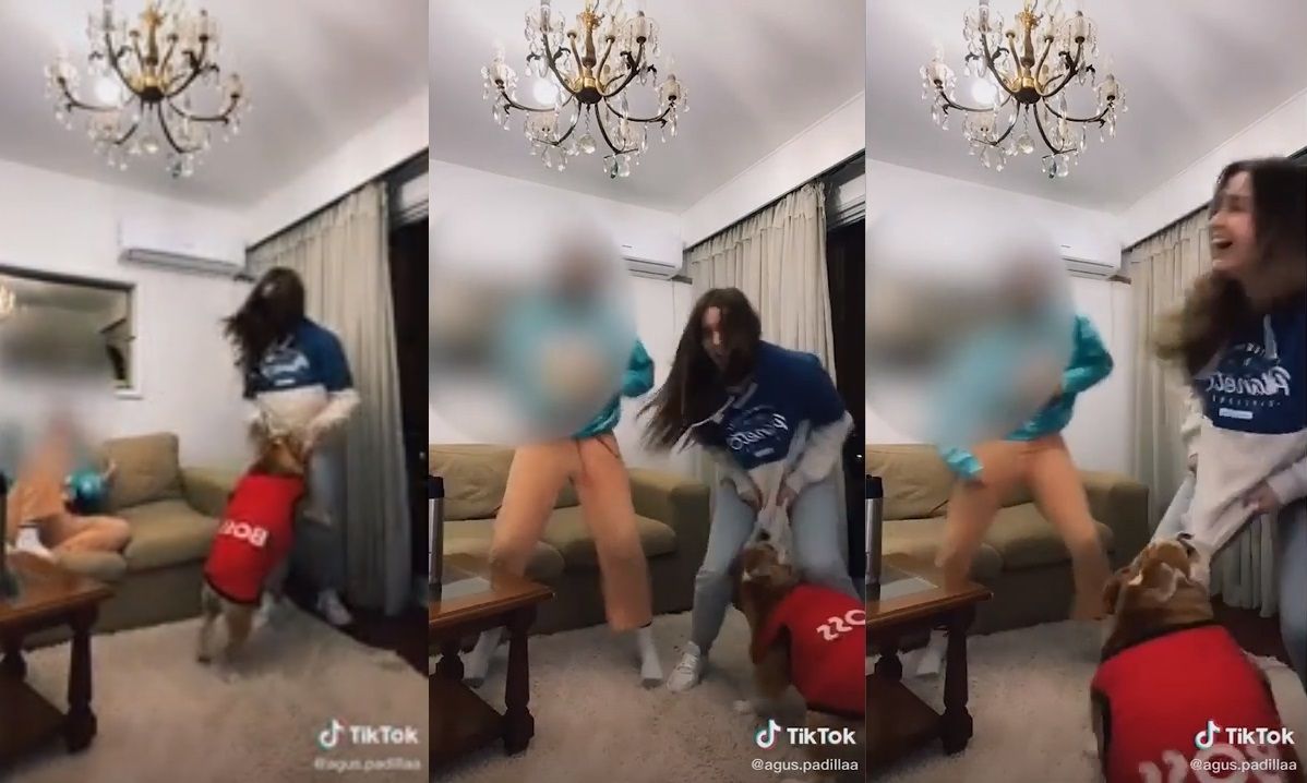 El animal le mordió la remera justo en el momento en que ella se encontraba bailando La Jeepeta de Dj Alan Gomez & Jona Mix. El clip fue compartido a través de la cuenta @agus.padilla de TikTok y se viralizó en distintas partes del mundo. Más de 500.000 personas reaccionaron al ver las imágenes.