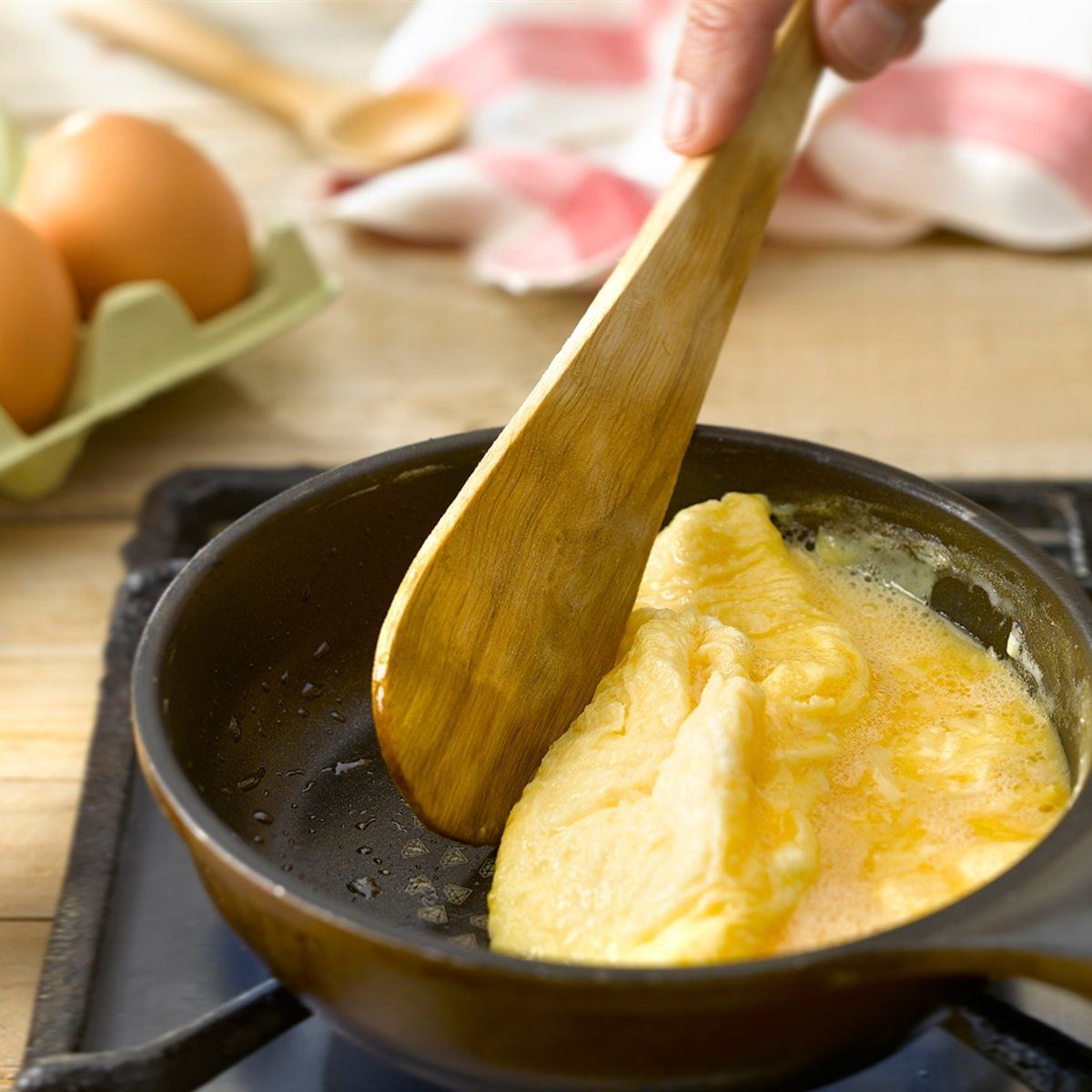 El tiempo de cocción es clave para no pasar nuestro omelette. Según la técnica francesa, el huevo no debería adquirir coloración en la cocción. Es decir que cuanto más amarillo quede mayor sabor tendrá nuestra preparación.