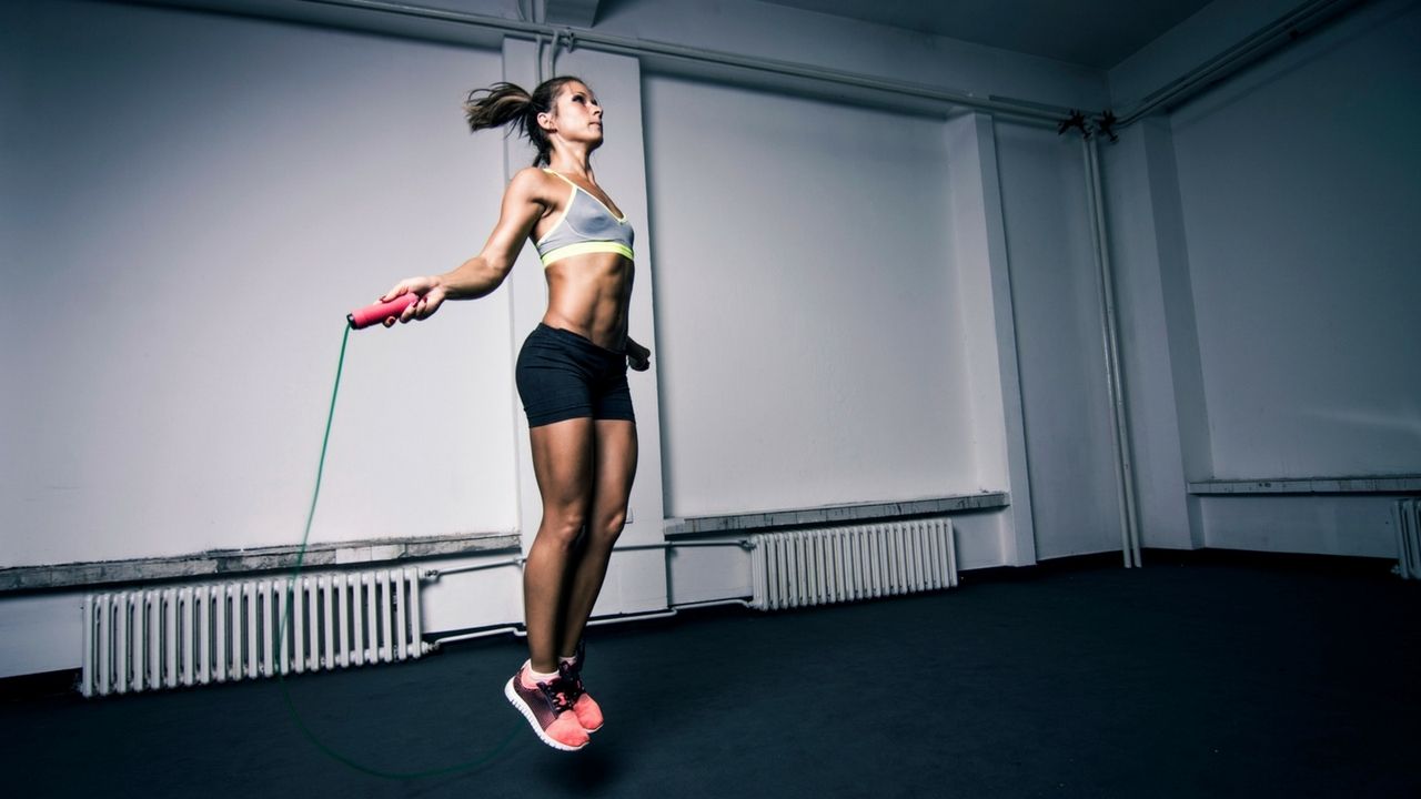 - Saltar a la cuerda: comienza cada rutina con un ejercicio que sirva para calentar y preparar al cuerpo. Saltar es una rutina que puedes practicar a diario, entre 15 y 20 minutos. Si la quieres incluir en esta rutina de entrenamiento puedes hacer 4 series de 5 minutos cada una. El ritmo y el tipo de salto lo decides en función de tus posibilidades y gustos, ten en cuenta que debes aumentar y reducir la intensidad de manera gradual.