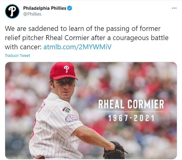 El equipo de Filadelfia en su comunicado destaca la gran persona que era Cormier y el amor que sentía por el béisbol, pero antes que nada tenía a su familia como su primera prioridad y el poder ayudar a los demás.