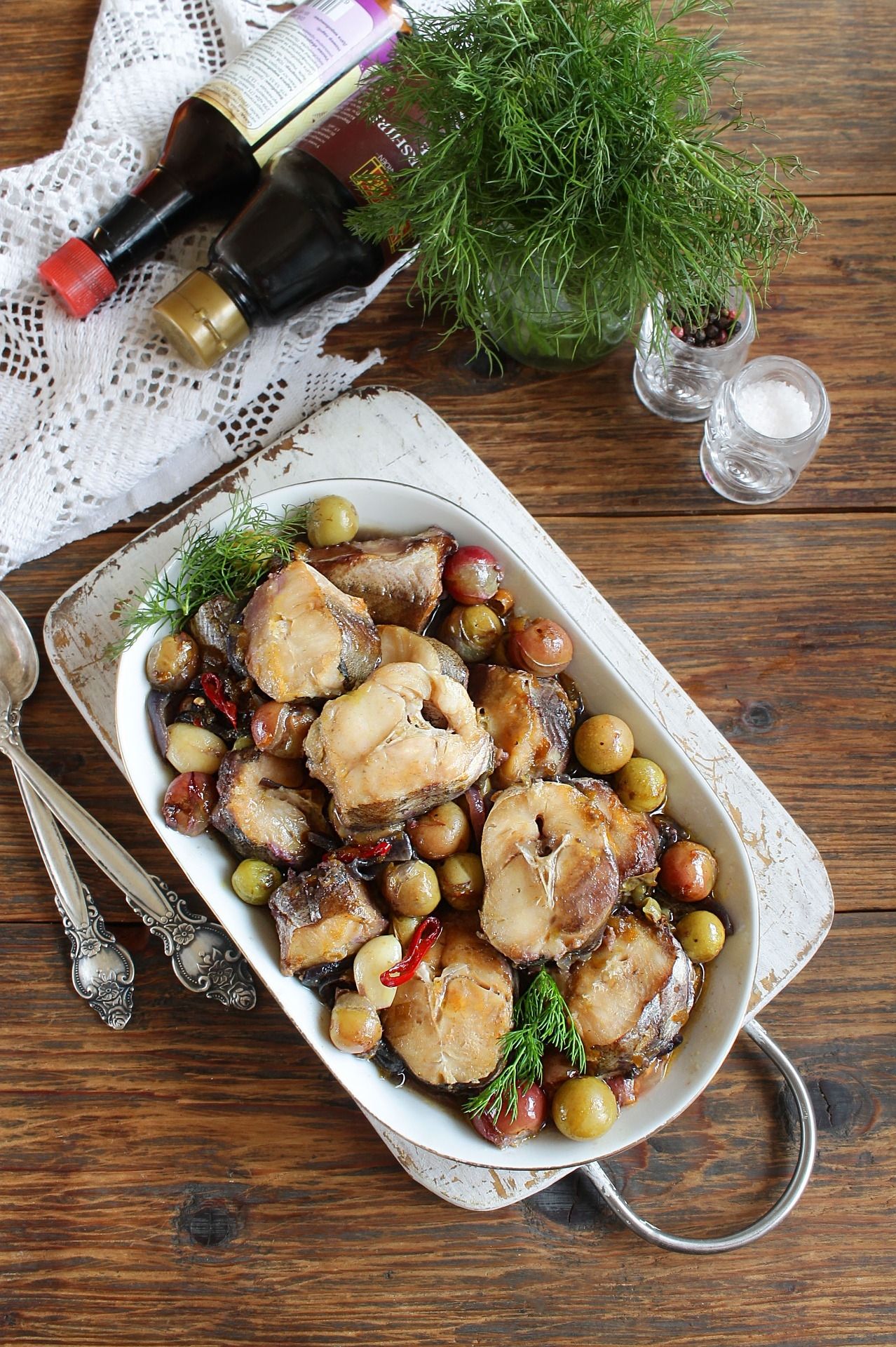 Cuando los ajos estén listos, servimos un colchón de vegetales con los lomos de pescado encima y sobre ellos, los ajos.