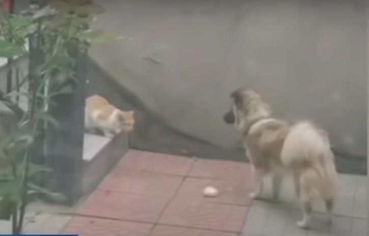 Video: perro alimenta a un gato callejero y su gesto conmovió a todos
