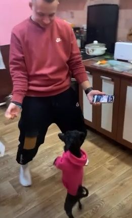 En esta oportunidad, la divertida escena ocurrió en Rusia. En las imágenes se puede ver a un hombre que se para enfrente a su mascota y ambos comienzan a bailar al ritmo de la música.