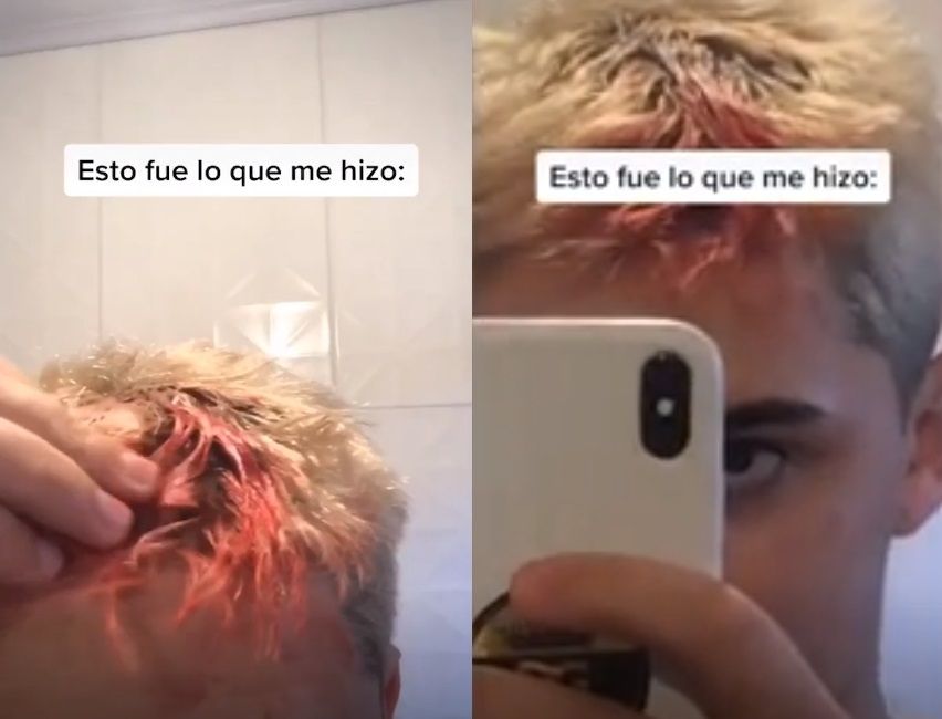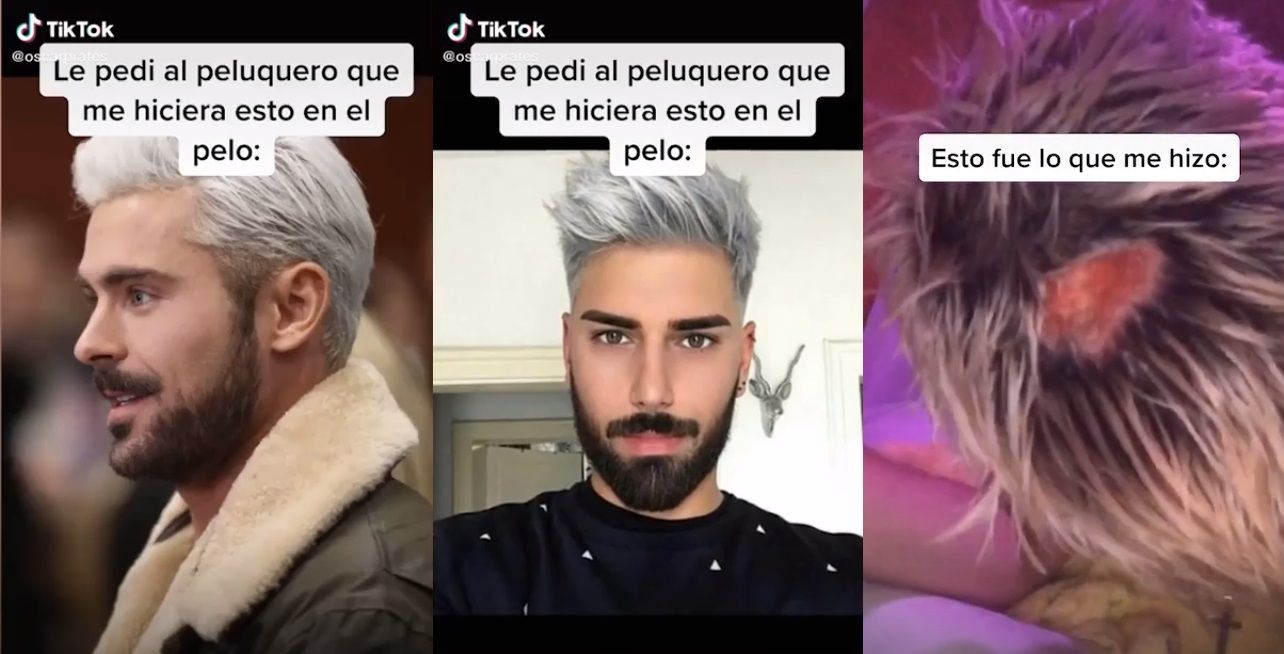 El joven acudió a una peluquería con una serie de imágenes de referencia para que le realizarán una transformación en su cabello. Él buscaba cambiar su pelo a color platinado.