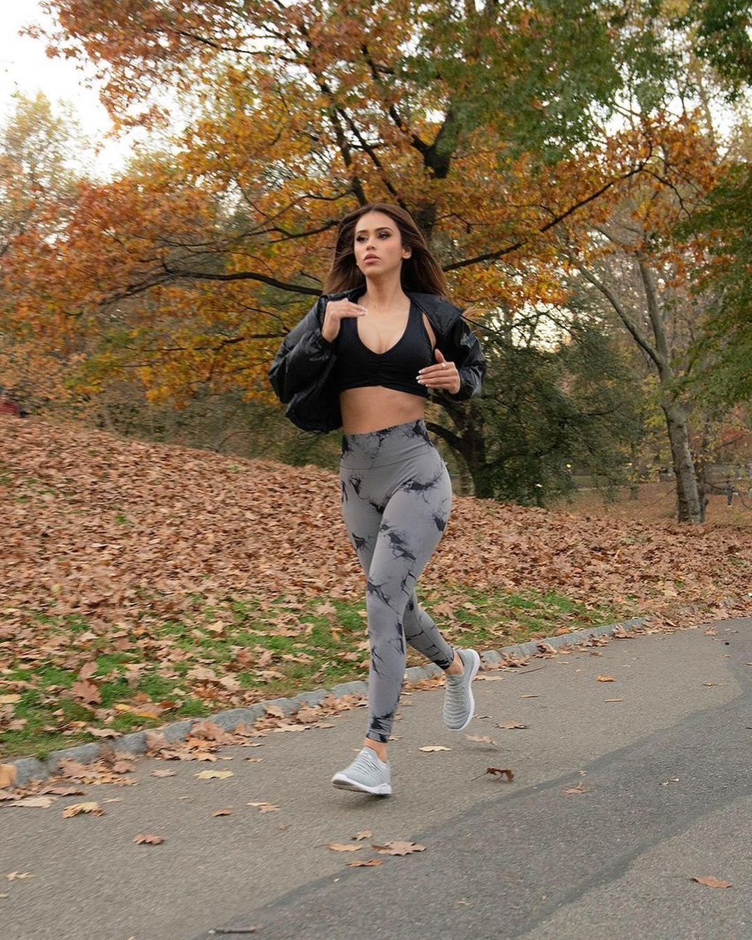 En esta oportunidad, García subió unas instantáneas posando en el Central Park de Nueva York. Al parecer la modelo salió a hacer su sesión de entrenamiento diario, y obvio aprovechó para tomarse unas fotos, presumir su look y su bellísima figura. Esta vez, la modelo lució un top deportivo color negro, con una campera a tono y lo combinó con los leggins del momento.