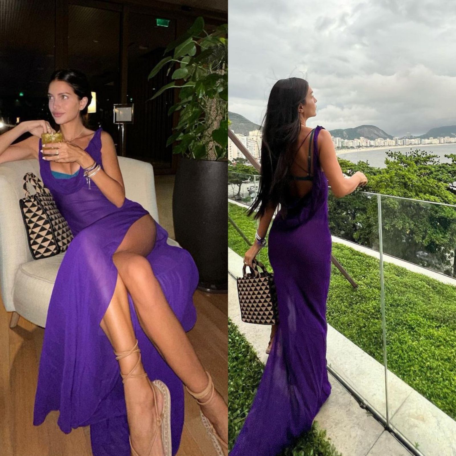 En un estilo más verano y super descontracturado se la puede ver luciendo un vestido de seda de color violeta, una de las fuertes tendencias de este 2023. El modelo elegido por Zaira pertenece a Rat & Boa y se trata de Abstinthe Dress con un costo en mercado de 215 euros, además de haberlo combinado con un bolso Prada Symbole de tela bordada, tal como especifica la página oficial de aproximadamente 4.100 euros.