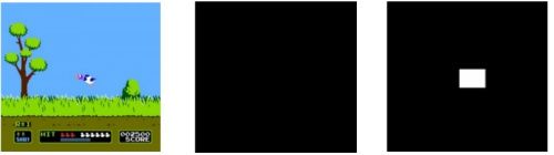 Cuando presionas el gatillo, la pantalla de la televisión se pone negra durante un frame completo y después, en el siguiente frame, el juego pone una pantalla negra pero con un pequeño cuadro blanco en el lugar en el que debería estar el blanco al cual ibas a disparar; todo esto a una velocidad tan alta que pasaba imperceptible al ojo humano. Así que, si estabas jugando el legandario “Duck Hunt“, por ejemplo, la secuencia sería así: