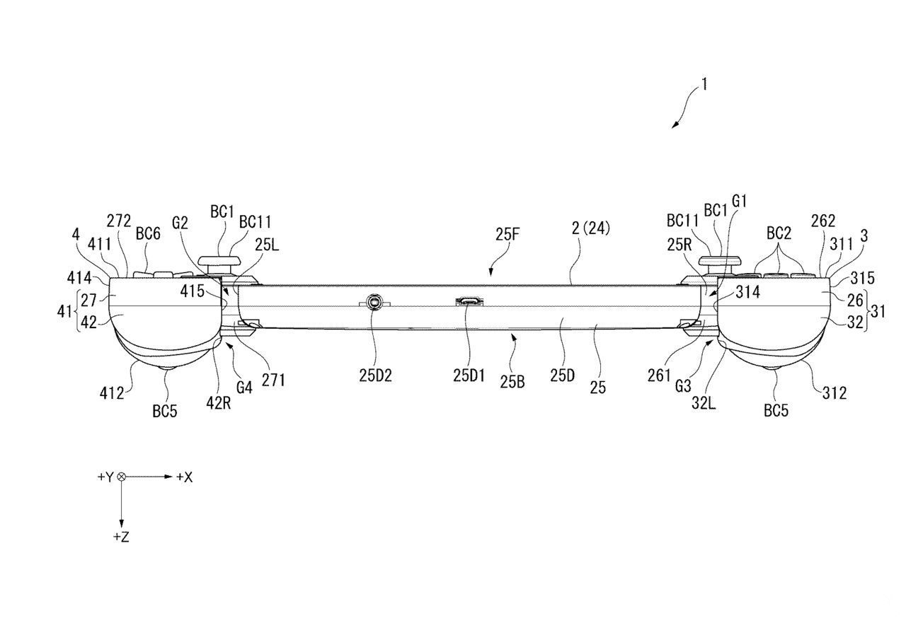 La patente enseña los diferentes componentes que componen el sistema, pero no sirve para extraer demasiados detalles específicos sobre su hardware. A partir del registro, la comunidad ha empezado a especular si este prototipo apostaría por los mandos extraíbles de la pantalla o tableta.