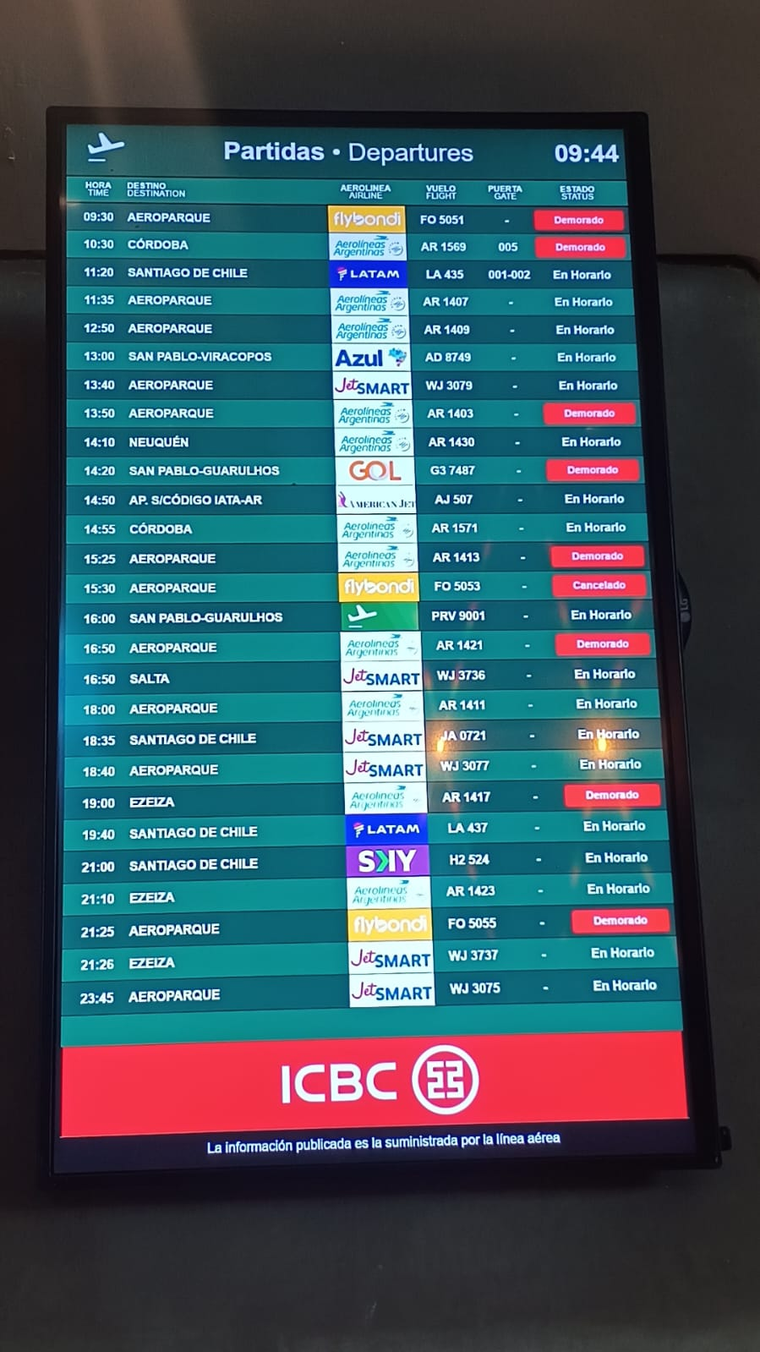 Muchos vuelos con destino a Ezeiza, Aeroparque y a Brasil han sido entre reprogramados y cancelados para la jornada de este viernes.